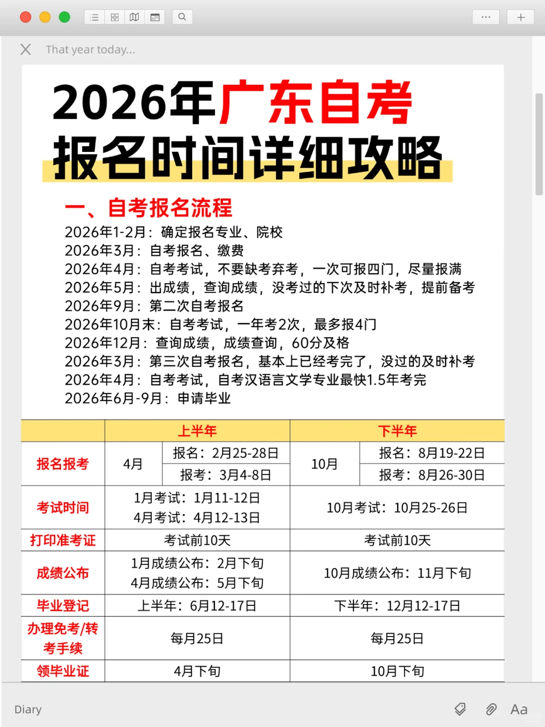 新发布!2026年广东自考大专全年考试时间表,速看各考期课程安排!