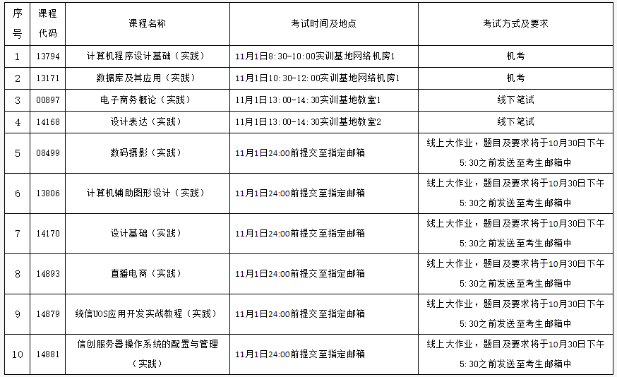 【转发】北京科技职业学院2025年下半年自学考试实践类课程考试安排