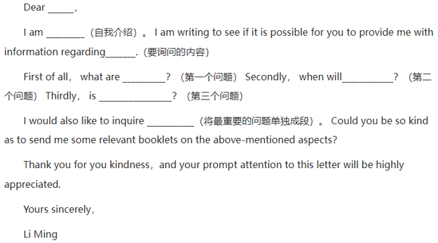 I’m writing to ask if it is possible for my best friend Li Ming to rent a room in your house. He is going to study computer science in a university in London next month. He is an excellent student with high scores. In his spare time, Li Ming likes reading books, watching movies and listening to music, especially light music. He is a very kind and friendly person, always ready to help others. I’m sure that your family will get along well with him. I will give you more information about him if it is necessary.