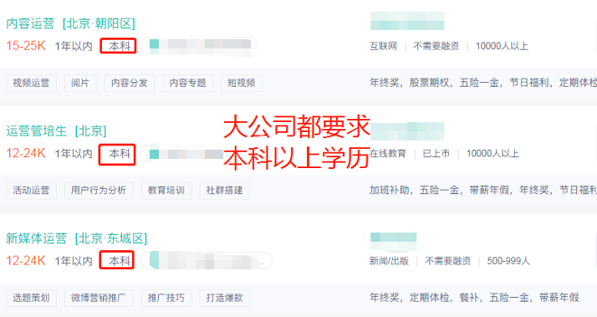 很多公司招人,对工作经验都不要求,但是第一条往往是本科学历。