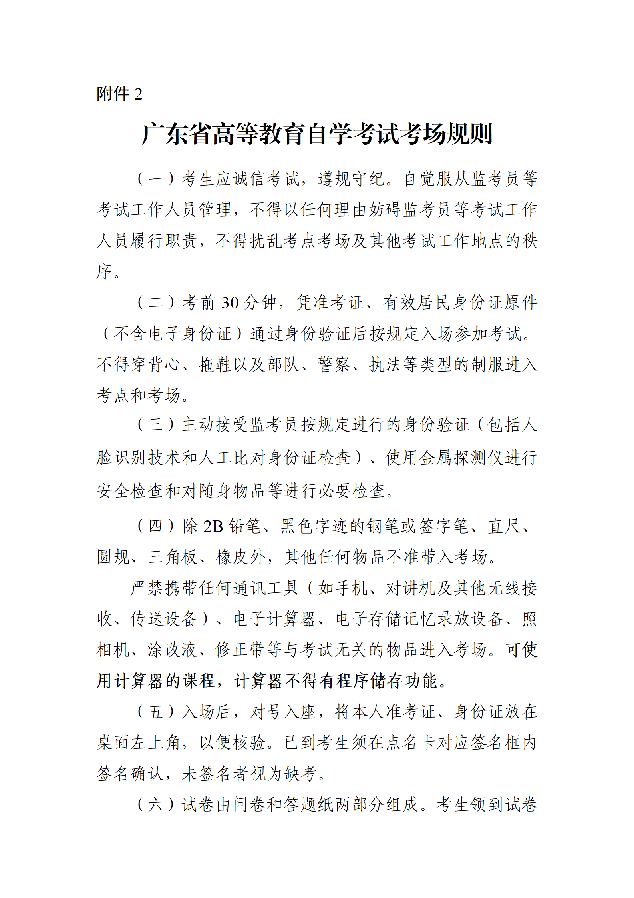 2.广东省高等教育自学考试考场规则