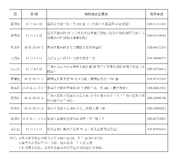 - 【广州】领取2025年上半年自学考试毕业证书时间地点(10月29日至11月5日)
