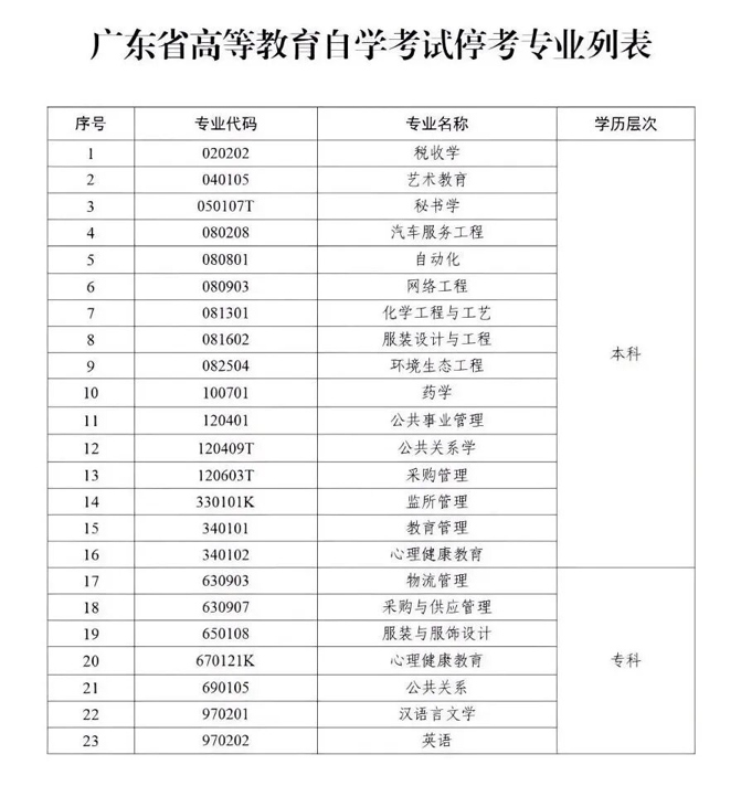 (一)自2022年10月考试起,停考专业不再接受新生报名;