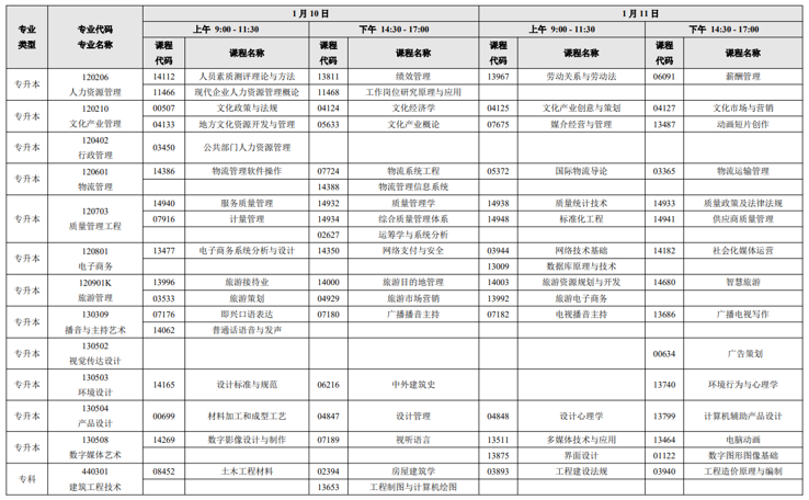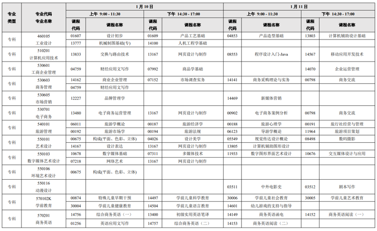 1月自考考试时间为:1月10-11日;报名时间预计为11月下旬公布,具体以考试院公布为准。
