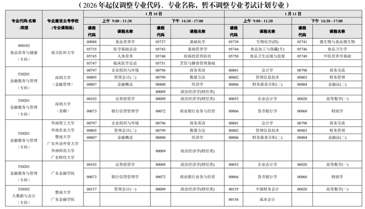 - 速看!2026年1月广东自考本科开考专业及主考院校完整版汇总!