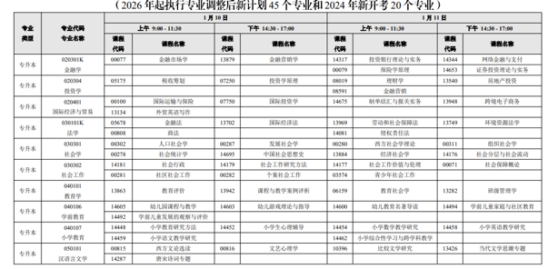 (二)2026年起仅调整专业代码、专业名称,暂不调整专业考试计划专业