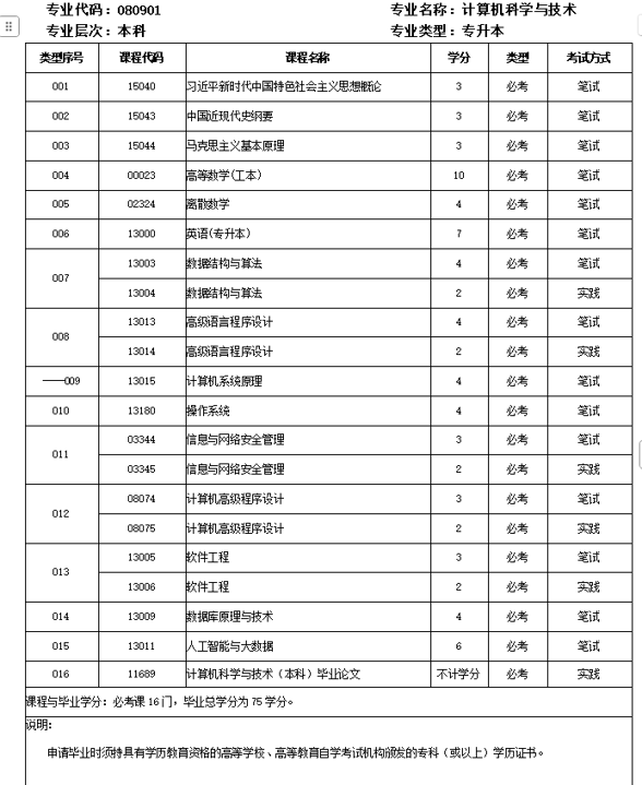 计算机科学与技术中,必考课程包括高等数学、离散数学和英语,专业课程对考生的基础有一定要求,适合有相关基础或者从事IT行业的考生报考。如果完全零基础则不大建议报考,挂科率会比较高。