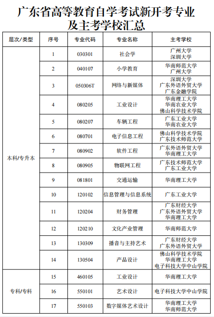 - 速看!2026年1月广东自考本科开考专业及主考院校完整版汇总!