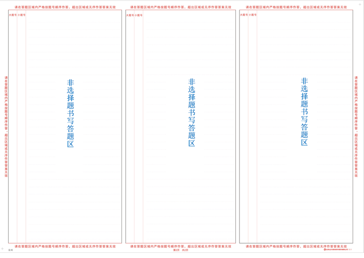 答题卡的格式:答题卡设计采用主客观一体化设计,选择题和非选择题的答题区域在同一张答题卡上。答题卡分通用卡、专用卡两种类型。大部分科目使用通用卡,少数含特殊题型的科目使用专用卡,专用卡在通用卡的基础上加上特殊题型。