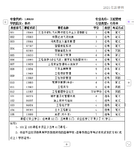 自考工程管理本科新版计划优化了课程设置,更侧重 “技术 + 管理” 复合型能力培养,具体科目、学分及考试方式如下,建议直接收藏备用: